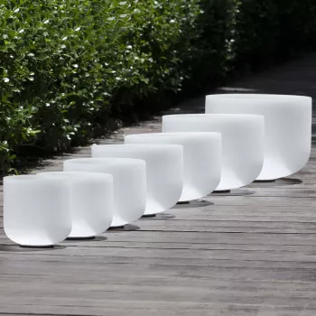 Lotus Design Chakra Frosted Quartz Crystal Singing Bowl Set