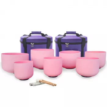 6-12 Inch Pink Colored Crystal Singing Bowls Set