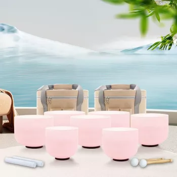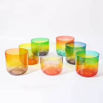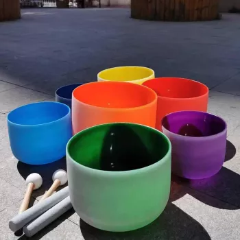 Colored Chakra Frosted Quartz Crystal Singing Bowl Set